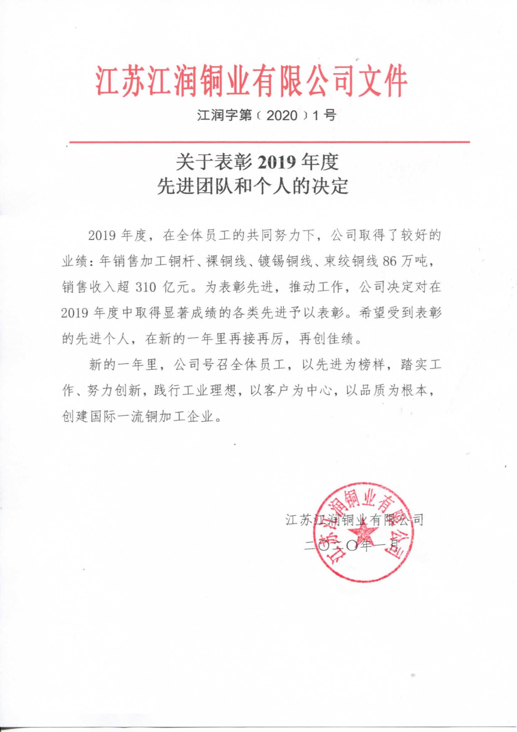 2019年(nián)度黄片入口(rùn)銅業先進表彰