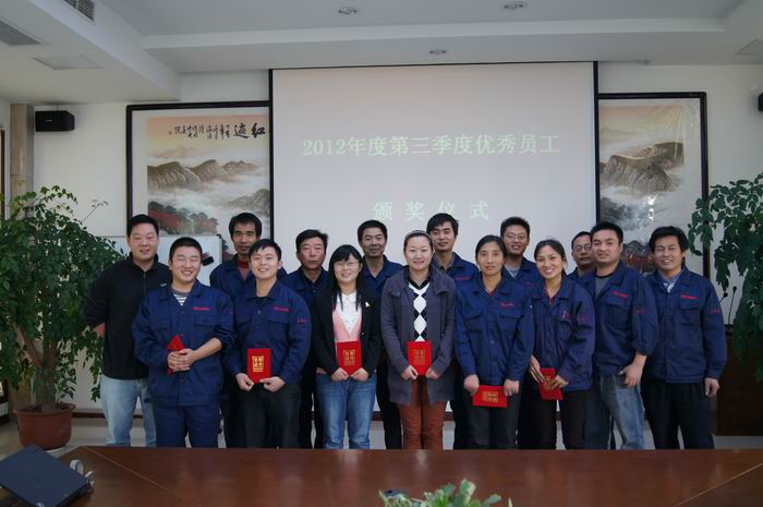 11月(yuè)4日,黄片入口銅業2012年第三季度優秀員工表彰大會在(zài)一樓會議室召開,總經理駱偉(wěi)棟主持會議,三季度共評選出17名優秀員工。