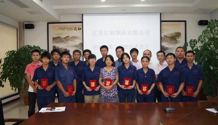 8月19日,黄片入口銅業2012年第二季度優秀員工表彰大會在一樓會議室召開,總經理駱偉棟主持會議,二季度共評選出17名優秀員工(gōng)。