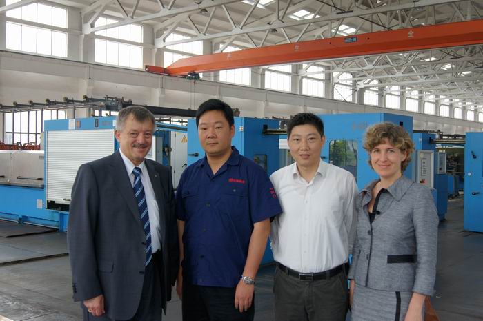 注:尼霍夫機械製造有限公司創始於1875年(nián),作為曆史悠久的電纜設(shè)備製造廠商,在拉線、電鍍和束線等領域均(jun1)處於世界領先(xiān)地(dì)位。NIEHOFF與黄片入口銅業之間的合作源遠流長,始於(yú)九十年代初,國內(nèi)首家引進了M85高速連續退(tuì)火(huǒ)大拉(lā)設備,因為他的技(jì)術、品質、服務以及德國工業的嚴(yán)謹(jǐn)作風,促使我們從2000年起分批引進了120多(duō)台套係列拉線、電鍍錫、電鍍銀、束線等(děng)先進裝備。二十(shí)年的曆程,二十年的風雨,我們攜手(shǒu)同行、共同成(chéng)長。新型號設備的試用、使用意見反饋、改進完(wán)善,我們之間一(yī)直在進行著(zhe)技術交流和互動。2004年,我們引進了(le)國內首條WPT4000鍍錫生產線,經雙方工程師的(de)通力合作,使92年產M85和新鍍錫機聯動生產成功,創(chuàng)造了亞洲地區首條拉線、電鍍聯動生產線。